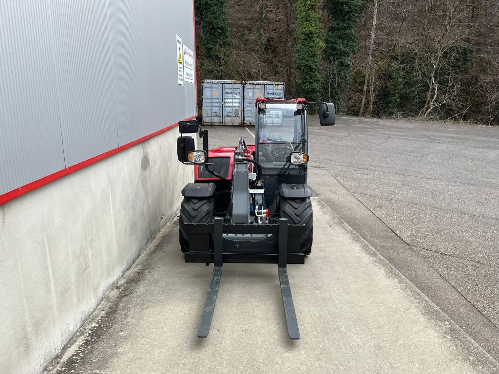 3. Ventil Vollkabine Luftgefederter Fahrersitz, Arbeitsscheinwerfer Pos. 3,4,7, SVG-Beleuchtung, Allradlenkung, Druckentlastung 3. Steuerkreis und Steckkupplungen, Schnellwechsler hydr./Euro8, Rangierkupplung, MFK blau 30 km/h, Palettengabelträger, Greiferschaufel